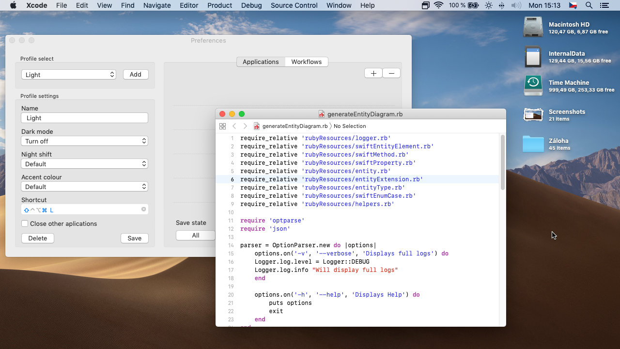 The main purpose of this utility is to facilitate the transition among different workspaces (work environments). User-defined profiles are equipped with a container for caching apps internal states and its windows arrangement The profile also allows the user to predefine system settings e. g. theme, accent colour.